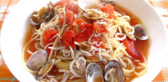 アサリとシラスのスープパスタ
